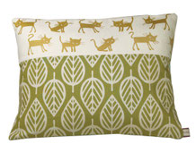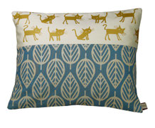 Die goldenen Kätzchen werden in unserer Werkstatt gedruckt. Kombiniert werden diese dann mit den Stoffen aus unserer handbedruckten Stoffkollektion. Jedes Kissen ist ein besonders schönes Unikat - ein Schmuckstück zum verlieben und verschenken!