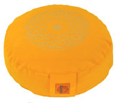Runde Meditationskissen mit edlem Golddruck. aus unserem Atelier in Hannover.. Die individuellen farbenfrohen Stoffe wurden von einer Färberei in Deutschland extra für diese Kollektion eingefärbt. Wunderschöne individuelle handgefertigte und bequeme Meditationskissen für deine Yogapraxis.